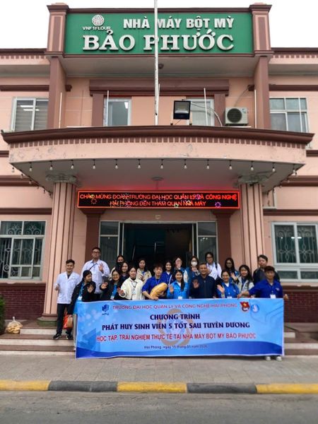 Chiều ngày 15/01/2026, Đoàn thanh niên trường Đại học Quản lý và Công nghệ Hải Phòng cùng với các bạn sinh viên trong Câu lạc bộ tình nguyện, Câu lạc bộ sinh viên 5 tốt đã có một chuyến trải nghiệm vô cùng ý nghĩa và thú vị tại nhà máy bột mỳ Bảo Phước thuộc Công ty Cổ phần Vinafood 1.