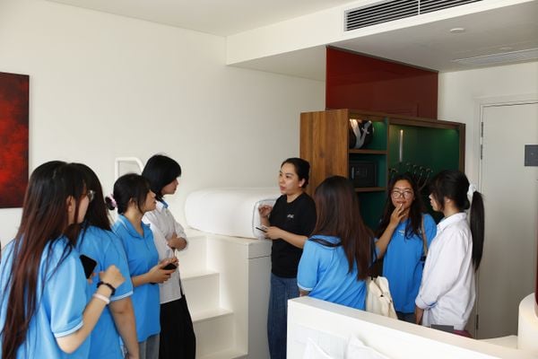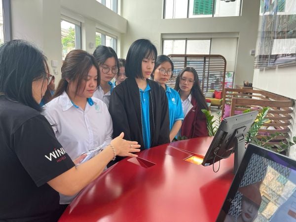 Đặc biệt, sinh viên còn được thực hành một số nghiệp vụ cơ bản dưới sự hướng dẫn của nhân viên khách sạn, như mô phỏng quy trình check-in bằng công nghệ tự động, tìm hiểu cách xử lý tình huống thực tế với khách hàng, hay quan sát cách áp dụng công nghệ để tối ưu hóa dịch vụ.