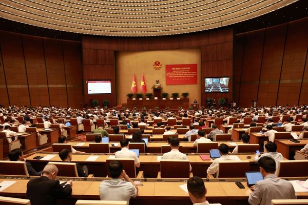 Tổng Bí thư Tô Lâm và các đại biểu tham dự Hội nghị tại điểm cầu chính Phòng họp Diên Hồng, Nhà Quốc hội, Hà Nội.