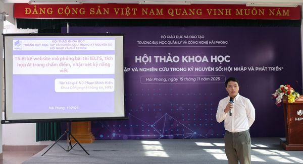 Ngày 15/11/2025, tại Trường Đại học Quản lý và Công nghệ Hải Phòng (HPU), Hội thảo Khoa học 2025 với chủ đề “Giảng dạy, học tập và nghiên cứu trong kỷ nguyên số: Hội nhập và phát triển” đã diễn ra thành công tốt đẹp, thu hút sự tham gia sôi nổi của các giảng viên, nhà nghiên cứu và sinh viên đến từ nhiều khoa, ngành trong trường.