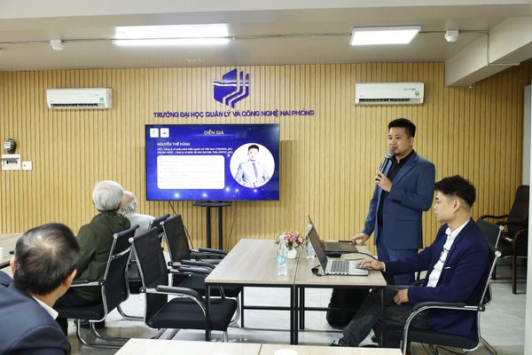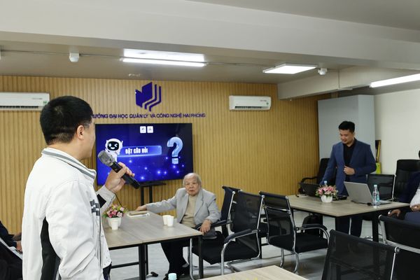 Chương trình cũng dành thời lượng cho phần thảo luận mở, nơi giảng viên và sinh viên trực tiếp trao đổi, đặt câu hỏi và chia sẻ kinh nghiệm về việc ứng dụng AI trong hoạt động giảng dạy, học tập tại Trường Đại học Quản lý và Công nghệ Hải Phòng. Không khí trao đổi sôi nổi, cởi mở đã góp phần lan tỏa tinh thần học hỏi, sáng tạo và đổi mới trong toàn trường.