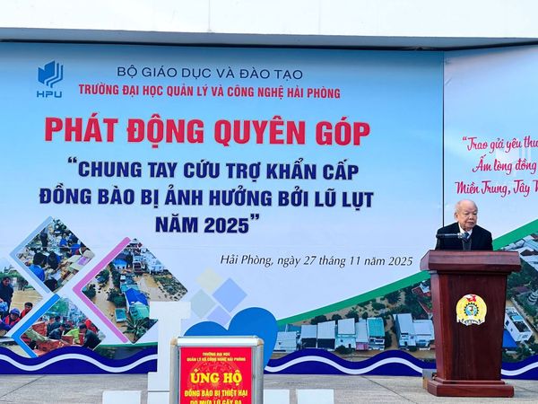 Trong thời gian vừa qua, nhiều tỉnh thành miền Trung và Tây Nguyên đã liên tục hứng chịu những đợt mưa lũ lịch sử gây thiệt hại nặng nề về người và tài sản. Trước tình hình đó, tinh thần “Tương thân tương ái”, “Lá lành đùm lá rách” – một nét đẹp truyền thống lâu đời của dân tộc – đã được tập thể Trường Đại học Quản lý và Công nghệ Hải Phòng phát huy mạnh mẽ thông qua chương trình ủng hộ đồng bào miền Trung, Tây Nguyên bị ảnh hưởng bởi thiên tai năm 2025.